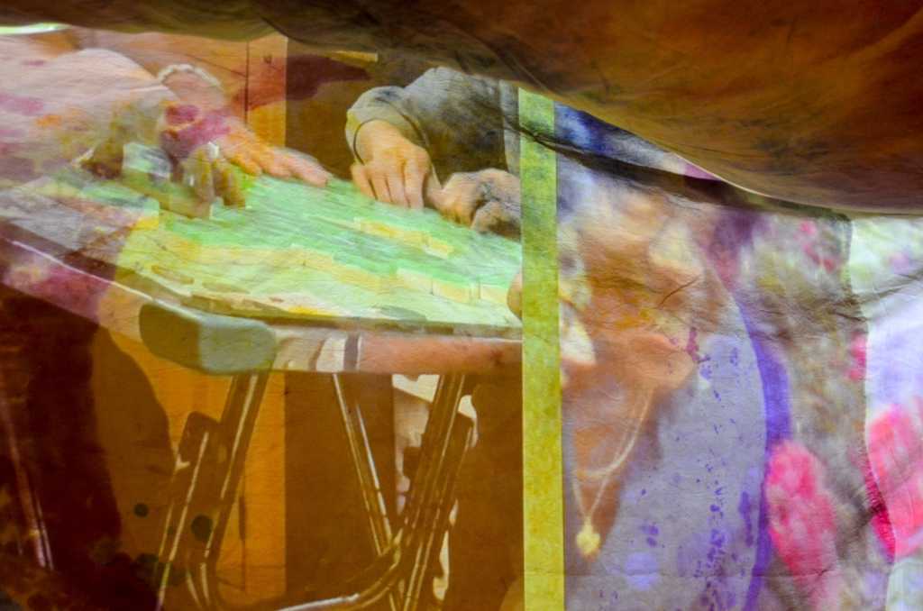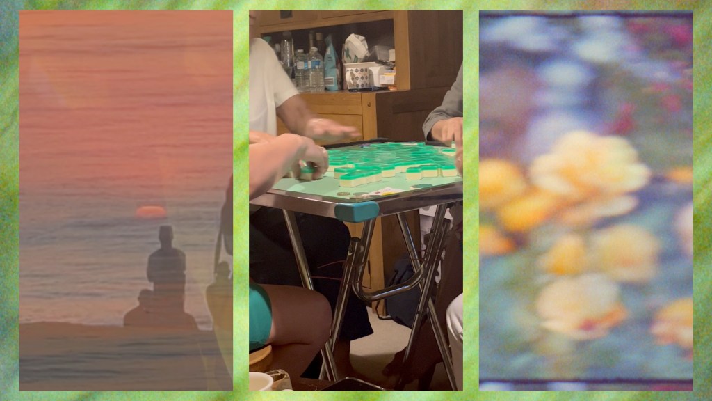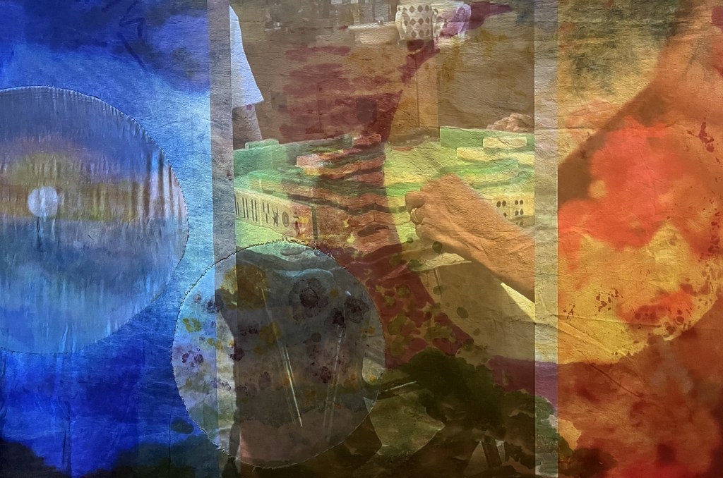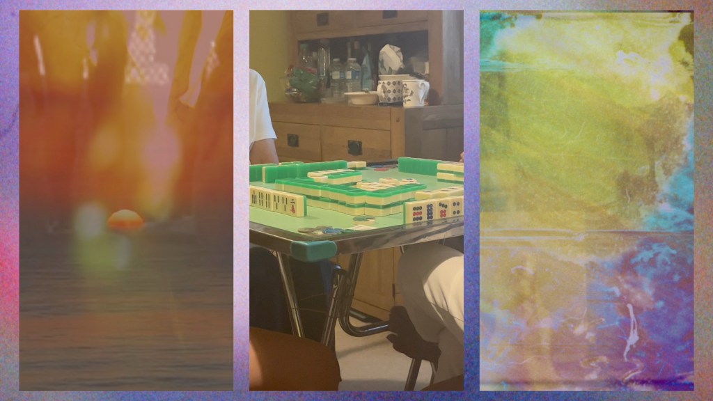 ‘So come the storms of winter (+ other musings)’ is a mixed media ode to cycles, communal making, communal play, and nurture. The film comprises of self-portraits and collages collected over three years, a game of mahjong, and the creation of two dyed fabrics made by many hands. It forms part of ‘Who Knows Where the Time Goes?