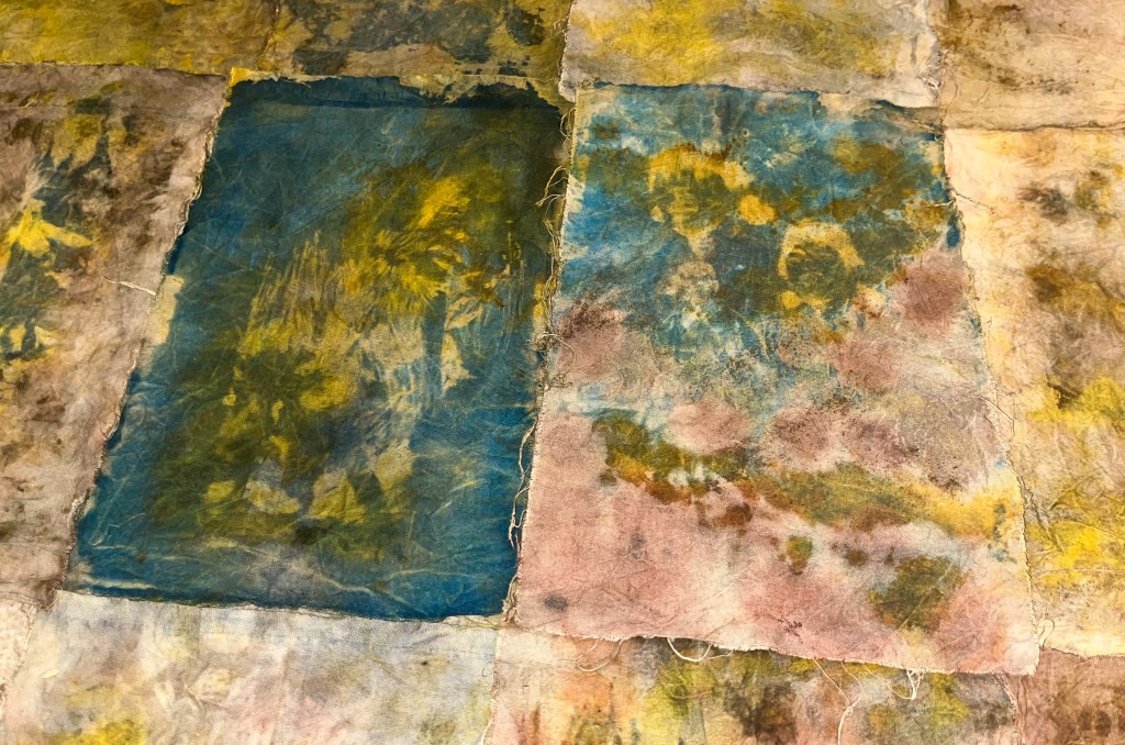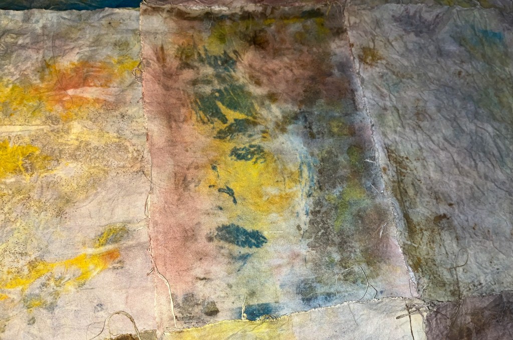 ‘Who Knows Where the Time Goes?’ is an ongoing collection of eco-printed tapestries and moving images archiving personal wanderings and wonderings, be it of literal forays across either new or well-treaded territories or of drifting and converging internal reflections, memories, imaginings, and emotions. These works are diaristic in nature, acting as highly personal and emotive glimpses into certain moments in time.